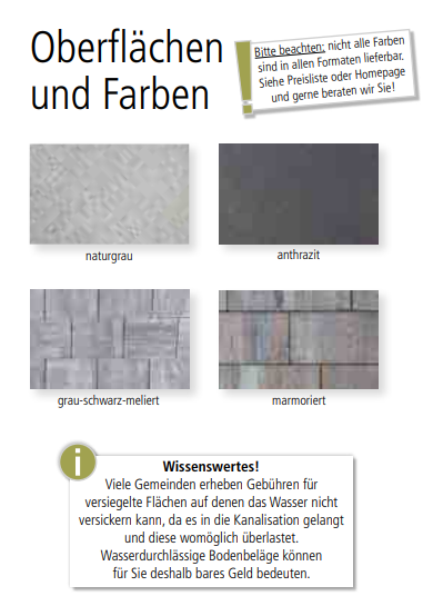 | natur | anthrazit, grau-schwarz-meliert, marmoriert, naturgrau |