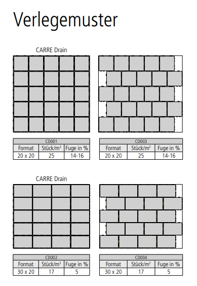 Mit der richtigen Splittung in den Drainfugen ergibt sich eine optimale Entwässerungslösung. Durch die Microfase und die Verschiebesicherung an 3 Seiten ist dieser Stein die optimale Lösung für Parkplätze.