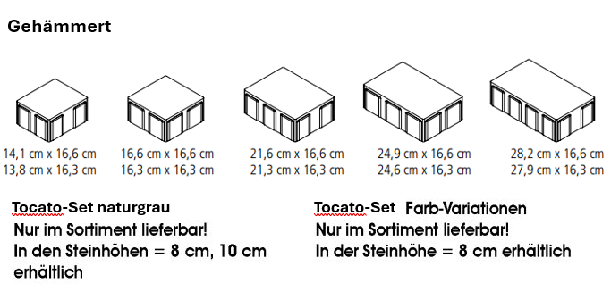 • die 5 Steingrößen im Sortiment verstärken den natürlichen Charakter eines gehämmerten Pflastersteins