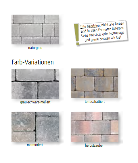 Im Rahmen unseres 60-jährigen Jubiläums bieten wir Ihnen dieses Produkt in allen Farben zu einem speziellen Preis an!                Das Pflastersystem mit gehämmerter Kantenausbildung, die eine dezente Alternative zur herkömmlichen Kantenalterung ist, übermittelt eine rustikale Stimmung und zeigt Geschmack bei der stilvollen Gestaltung von Einfahrten und Terrassen.  Entdecken Sie unser Produkt und lassen Sie sich begeistern ← klicken Sie hier